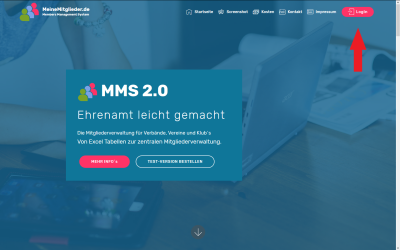 Auf der Internetseite https://MeineMitglieder.de findest Du (oben rechts) einen Button „LogIn“.